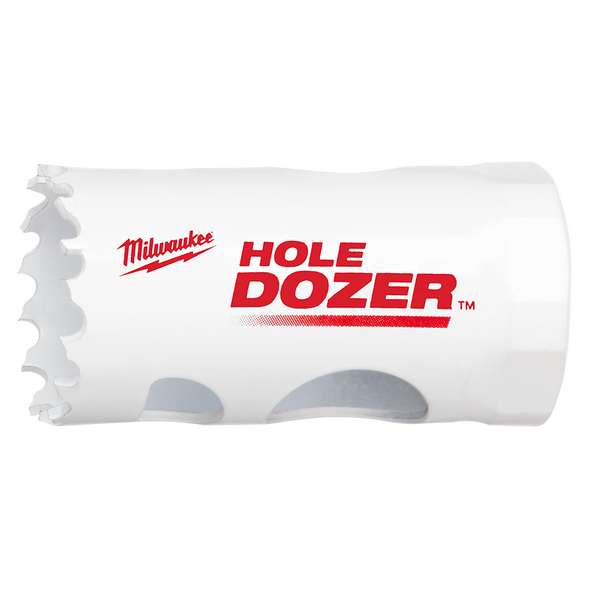 Milwaukee® HOLE DOZER™ Bi-Metal hole saw's new 3.5 TPI tooth offers the longest life in metal applications. It features RIP GUARD™, a tooth design built with more steel behind the cutting edge for maximum durability. RIP GUARD™ supports the Limited Lifetime Tooth Break Warranty applied to all Milwaukee® HOLE DOZER™ Bi-Metal hole saws. The All-Access slots feature solves the frustration of plug removal for less downtime and more productivity between holes. The latest slot design gives increased pilot visibility for accurate placement and faster chip ejection keeping cuts cool. The HOLE DOZER™ Thermoset anti-friction coating allows for cooler and faster cutting. optimised for cordless tools, the HOLE DOZER™ hole saw deliver 25% more holes per charge and can take on all general-purpose applications. Milwaukee® proudly makes HOLE DOZER™ hole saws in the USA.