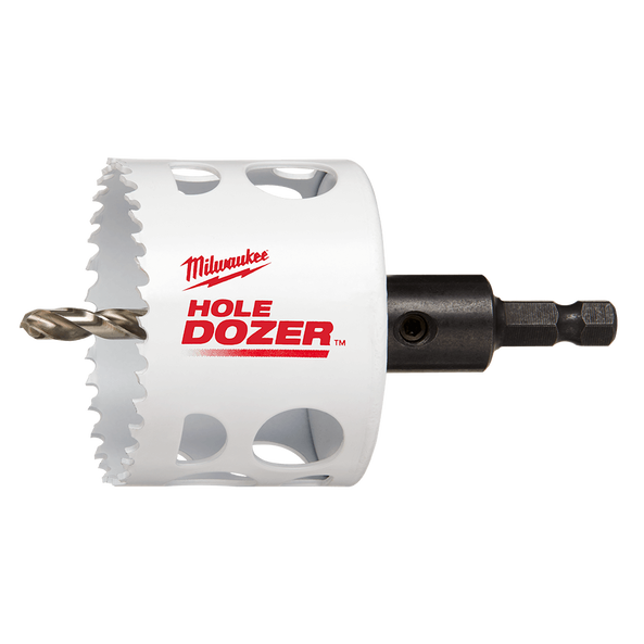 Milwaukee® HOLE DOZER™ Bi-Metal hole saw's new 3.5 TPI tooth offers the longest life in metal applications. It features RIP GUARD™, a tooth design built with more steel behind the cutting edge for maximum durability. RIP GUARD™ supports the Limited Lifetime Tooth Break Warranty applied to all Milwaukee® HOLE DOZER™ Bi-Metal hole saws. The All-Access slots feature solves the frustration of plug removal for less downtime and more productivity between holes. The latest slot design gives increased pilot visibility for accurate placement and faster chip ejection keeping cuts cool. The HOLE DOZER™ Thermoset anti-friction coating allows for cooler and faster cutting. optimised for cordless tools, the HOLE DOZER™ hole saw deliver 25% more holes per charge and can take on all general-purpose applications. Milwaukee® proudly makes HOLE DOZER™ hole saws in the USA.