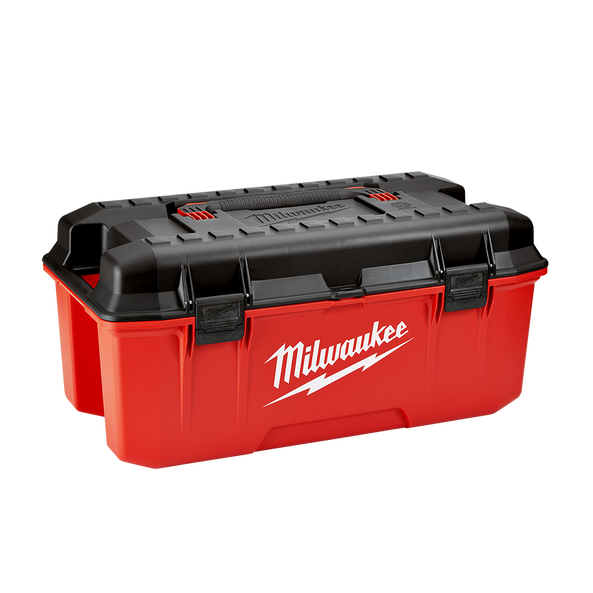 The MILWAUKEE 660mm (26") Jobsite Work Box is Nothing But Heavy Duty. Built with impact resistant materials, buttressed hinges, protected recessed latches, and reinforced corners, the 660mm (26") MILWAUKEE Jobsite Work Box is built to survive Over 1000 Drops with a 22kg (48lb) load. An integrated weather seal ensures the contents of the box stay dry and free of jobsite contamination and debris. Convenient pass through side grips allow for easy lifting and handling of the work box, even at awkward angles. The overmoulded wide grip handle makes carrying unbalanced loads a much easier task and also folds into a clamping cut groove to allow secure cutting of jobsite materials. The interior of the 660m (26”) Work Box provides ample space for long and bulky tools, while incorporating Corner Pocket Storage to give users more organization and easy access to their commonly used tools. Integrated Screw Bosses, built into the lid, provide users the opportunity to mount items, such as chargers, with a common screw. Backed by a limited lifetime warranty, The MILWAUKEE 660mm (26") Jobsite Work Box truly is more than a tool box.
