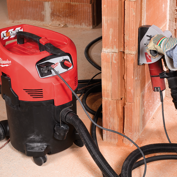 On-board power tool socket with auto on/off and 5sec stop delay to extract residual dust particles.