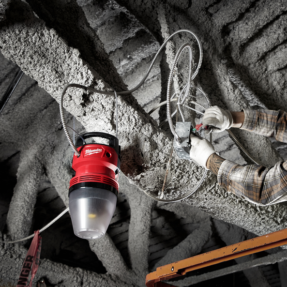 Easy setup. Instant light. No maintenance. The new LED 70W High Bay Light shatters expectations and brings a new level of innovation to the temporary lighting process. The LED 70W High Bay Light can be used in many construction environments from residential to large scale commercial jobs. The LED 70W High Bay Light has improved durability to virtually eliminate on-site maintenance. More importantly, the LED 70W High Bay Light improves the overall temporary jobsite lighting process. Out of the box the light comes with a standard 240V plug and supply cable, and in large applications the Site Lights can be wired together with standard building wiring for integration into temporary power systems for 240 volts. Once wired, the installation time is drastically improved with an integrated hang cable, and a Spring Loaded Cable Retention to ensure the light is secure once installed. With 7,700 lumens and operating at 70W, this light more than 30% more efficient than a 105W fluorescent. Reducing the number of circuits needed for temporary jobsite lighting, and lowering overall power consumption costs on the job, saving time and money.