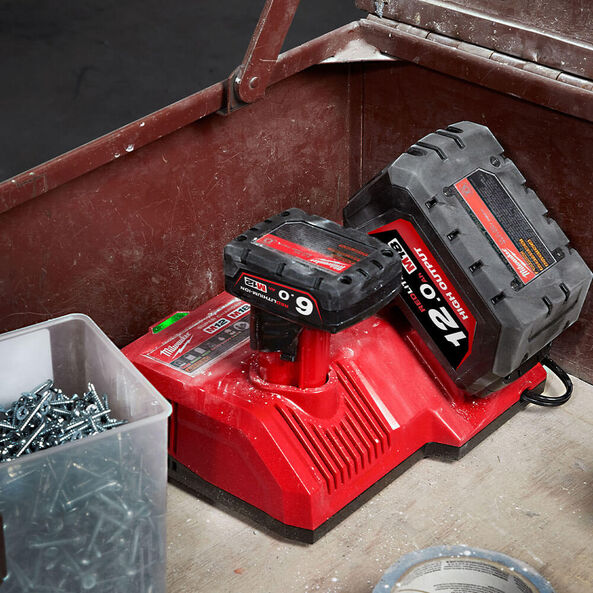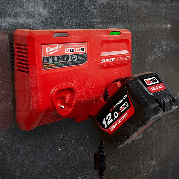 The MILWAUKEE® M12™ & M18™ Super Charger charges batteries faster than standard MILWAUKEE® chargers, massively reducing downtime and maximising productivity. The charger accepts all M12™ & M18™ batteries, providing an upgrade for both M12™ & M18™ systems.The M18™ REDLITHIUM™ HIGH OUTPUT 12.0Ah battery fully charges in only 1 hour. HIGH OUTPUT batteries are optimised for use with Super Charger, each built with premium components for superior charging capability. Featuring REDLINK™ Intelligence, the dual battery charger communicates directly with each battery to monitor cell voltage, temperature and charge status to optimise the performance and extend the life of the pack. The Super Charger identifies the fastest charge rate for each M12™ or M18™ battery pack inserted, adjusting to charge each in the shortest amount of time possible.