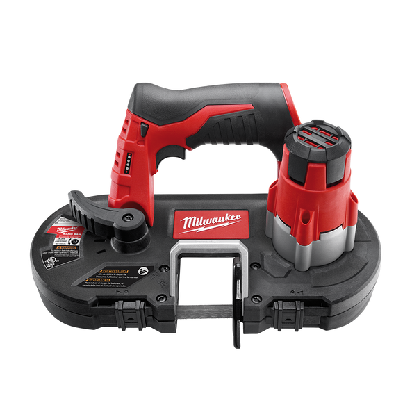 At less than half the weight and size compared to a traditional deep cut band saw, the M12 Band Saw provides one-handed power and portability to electricians, maintenance professionals, and other users cutting small diameter materials. The M12 Band Saw weighs only 3.0kg and 300mm in length, making it ideal for overhead or one-handed cutting applications. This powerful saw can cut through 19mm EMT in only 3 seconds, and will get over 150 cuts per charge with the M12 REDLITHIUM™ 3.0Ah High Capacity battery. With a 41.3mm cut capacity and low vibration, the M12 Band Saw performs clean cuts on the most common small diameter metal cutting applications. The M12 Band Saw also features a dual-latching lower guard that covers the blade outside the active cutting area making the tool suitable for one-handed use. The tool also includes a variable speed trigger, and LED light. Backed by MILWAUKEE’s 5-year warranty the M12 Band Saw Skin comes equipped with (1) 18 TPI metal cutting blade. Battery and charger are sold separately with this model. The M12 Sub-Compact Cordless band saw should be used only with MILWAUKEE 48390572 Sub-Compact Portable Band Saw Blades.