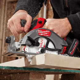 The M18 FUEL 165mm Circular Saw is the fastest saw in its class, offering fast cutting speeds, maximum runtime and longer tool life. The POWERSTATE Brushless Motor outpowers all other 18-Volt cordless circular saws and allows you to perform jobs that previously required a corded tool. The M18 REDLITHIUM™ 5.0Ah Extended Capacity Battery Pack (not included) delivers maximum runtime and provides more work per charge and more work over the life of the pack. The saw’s REDLINK PLUS Intelligence ensures optimised performance and protection from overloading, overheating and over-discharging. The 18-volt circular saw’s guards and shoe are built of cast magnesium to provide a durable, lightweight base. The saw also features an integrated LED light and a rafter hook for convenient storage on the job. The saw includes a blade wrench and a blade.