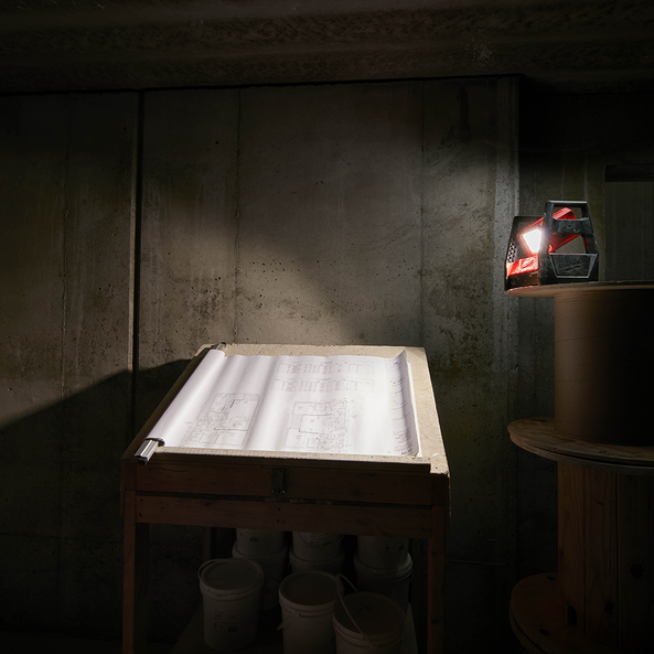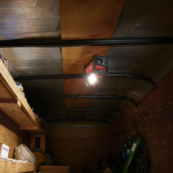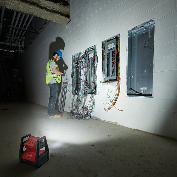 The M18 High Performance LED Area Light is designed to give professionals a portable area lighting solution that replaces 500W halogen flood lights and adapts, performs, and survives industrial use. Capable of filling large areas with light, it provides 3,000 lumens of high definition light output for in its high mode, 1,500 in medium and 650 in low, and it can run for up to 2, 4, or 9 hours respectively with an M18 REDLITHIUM™ 5.0Ah Extended Capacity Battery Pack. In addition to running off all M18 batteries, it can run off of an AC cord for all day applications. It uses high quality LEDs with a neutral white colour and a high colour rendering index paired with a MILWAUKEE designed reflector to produce an even beam pattern. Its head rotates 240° to direct light where it is needed, and there are 3 keyholes in its base for hanging in multiple orientations. Its compact footprint and integrated carry handles allow for easy transport or storage in bags, on carts, or in job boxes. This light stands up to the toughest working conditions, through its durable roll cage design and impact-resistant lens and bezel. The M18HAL-0 offers significant advantages over halogen work lights with superior impact durability and temperature management.