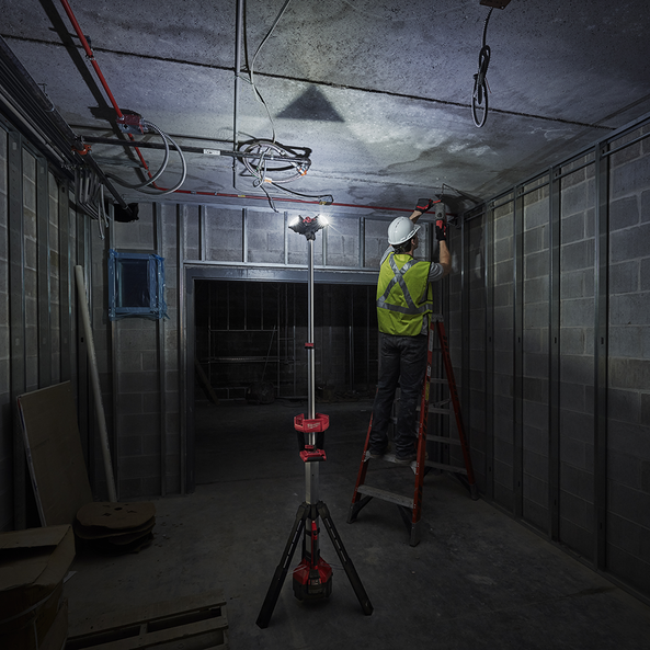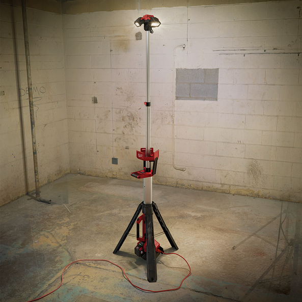 STAND UP. LIGHT UP. CHARGE UP. The M18 LED Stand Light/Charger is designed to deliver a lighting solution that ADAPTS, PERFORMS, and SURVIVES professional use unlike any other portable work light. The M18HSAL-0 can be setup in seconds to a max height of 2.1m, and collapses to less than 1.2m for easy transport and storage. The light head can be extended to light overhead work or minimise shadows when casting light downward. The multidirectional light head gives users the ability to orient the three independently pivoting light heads to cast light in several directions. With an integrated AC cord, a user can plug in the light in an AC socket and charge any M18 REDLITHIUM™ pack. Delivering 3,000 lumens, it fills up large areas with TRUEVIEW High Definition light. For optimised control over the output and run-time, the M18 LED Stand Light/Charger has three settings: high provides 3,000 lumens at 2+ hours, medium provides 1,700 lumens at 4+ hours, and low provides 900 lumens at 8 hours with a M18 REDLITHIUM™ 5.0Ah Battery Pack (not included).