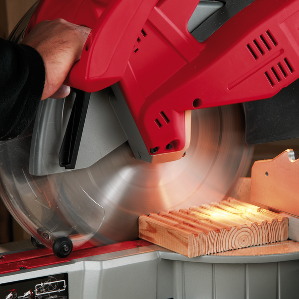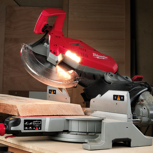Duel integral job site lights fully illuminate the work piece and cut line from either side of the blade