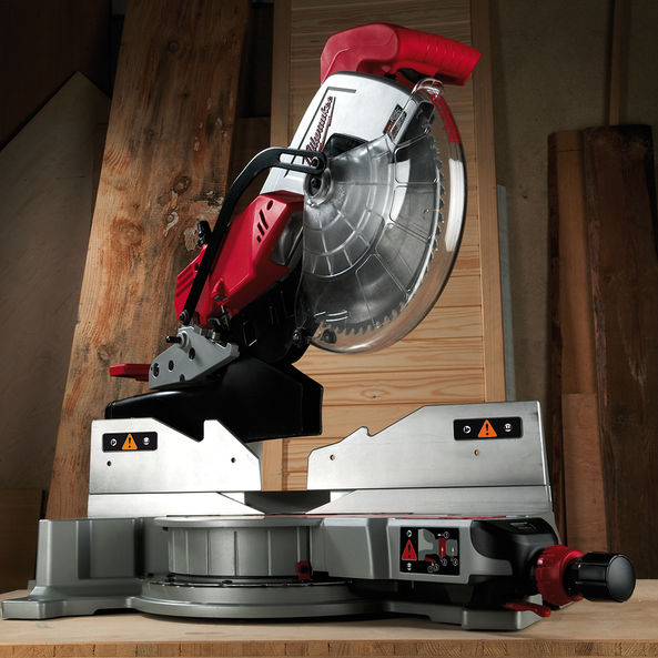 Integral dust channel captures 75% of all dust by capturing dust near the cut on both sides of the blade and directing it to the back of the saw