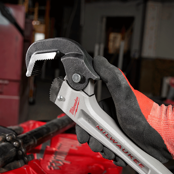 Self-Adjusting Pipe Wrench has a slim head to fit in tight spaces