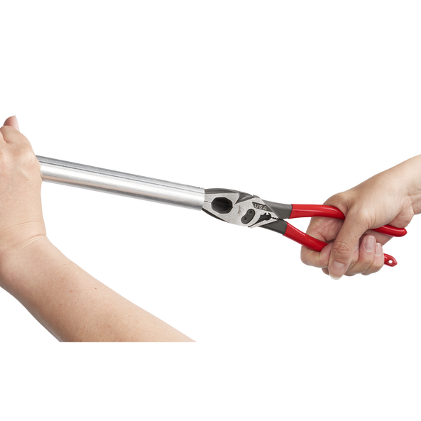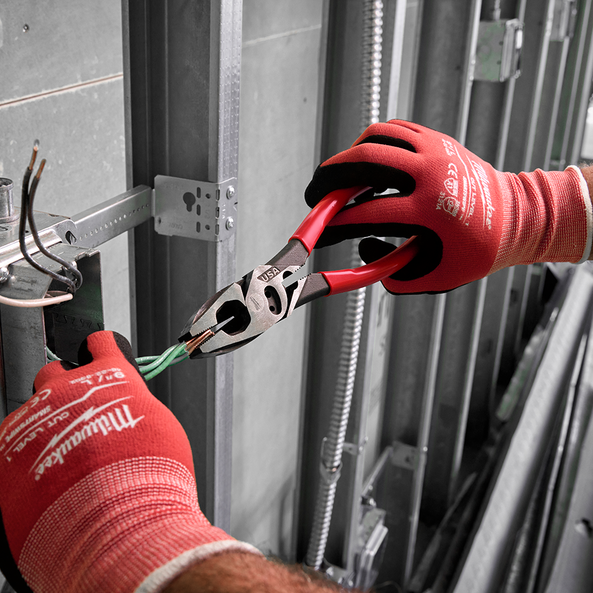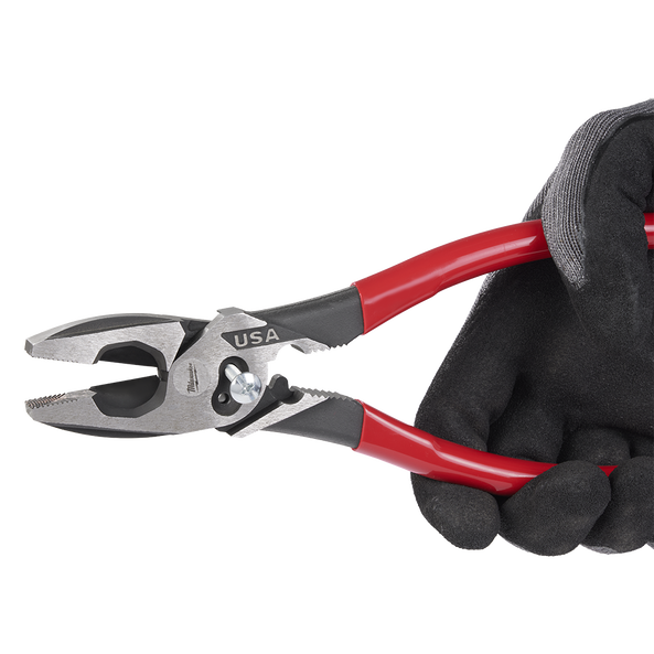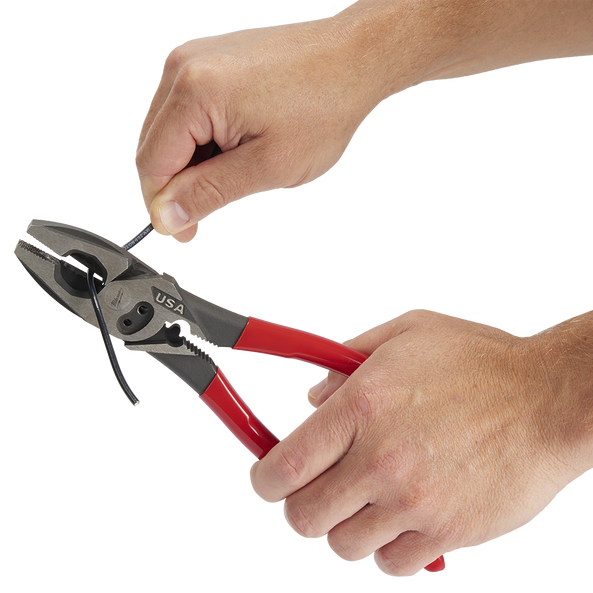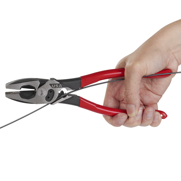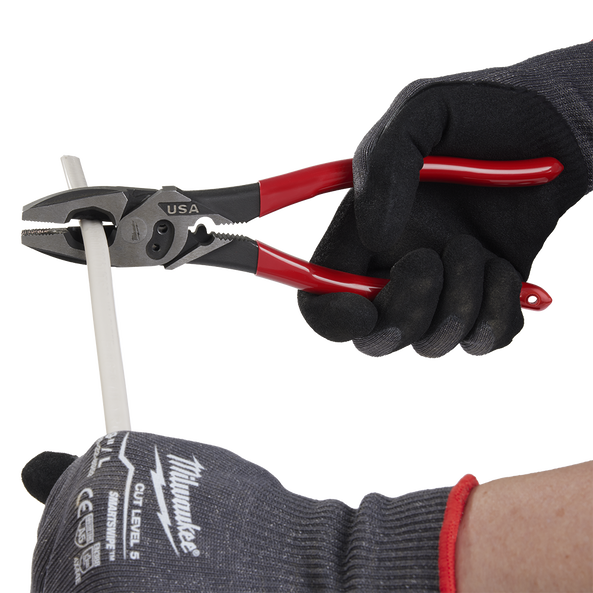 Our Milwaukee® USA Made Dipped Grip 228mm (9") Lineman’s Pliers with Crimper deliver the easiest cuts and a lasting edge. Our pliers are designed with an optimised pivot point to provide the best leverage for tough cuts through materials. Our Lineman’s cutting pliers deliver the confidence of a long cut life and maximum grip with laser-hardened edges and teeth. Our Lineman’s Pliers are engineered to deliver the smoothest open and close experience from the start, with no break-in period required. Our pliers include an integrated crimper for insulated and non-insulated terminals and #6 and #8 bolt cutters. For additional versatility, our Lineman’s Pliers also include a reaming head for 12.7mm (½") to 25.4mm (1") conduit and a straight fish tape puller. Our Milwaukee Lineman’s Pliers are made in USA with best-in-class manufacturing technology and USA sourced materials, including durable, press-forged steel, and are backed by a complete Lifetime Guarantee.