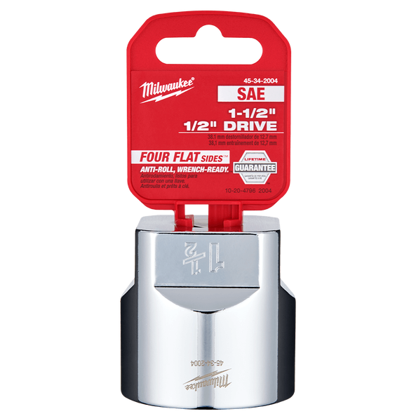 Milwaukee sockets feature an innovative design with FOUR FLAT™ parallel sides which deter rolling and are wrench-ready compatible. Socket sizes are stamped into the flats providing you with improved, easy-to-read visibility with chrome finish and a lifetime guarantee.