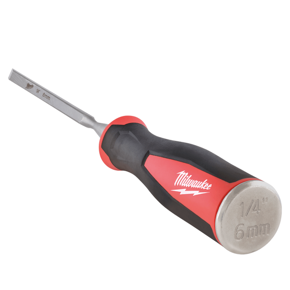 The Milwaukee Bevelled Edge Chisel Range feature an all metal core for maximum durability. The thru tang design combined with the metal strike cap allows the chisel to be struck without risk of damage to the chisel or user. Milwaukee Chisels have perminant lazer etched size markings for easy size identification. The blade storage allows for easy organisation and safe transportation. All Milwaukee Chisels are backed by a Lifetime Guarantee.