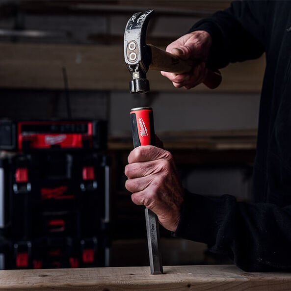 The Milwaukee Bevelled Edge Chisel Range feature an all metal core for maximum durability. The thru tang design combined with the metal strike cap allows the chisel to be struck without risk of damage to the chisel or user. Milwaukee Chisels have perminant lazer etched size markings for easy size identification. The blade storage allows for easy organisation and safe transportation. All Milwaukee Chisels are backed by a Lifetime Guarantee.