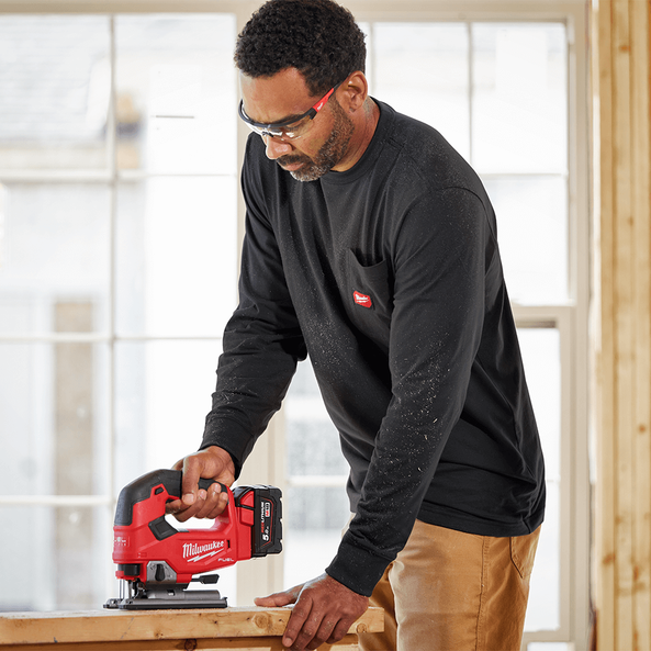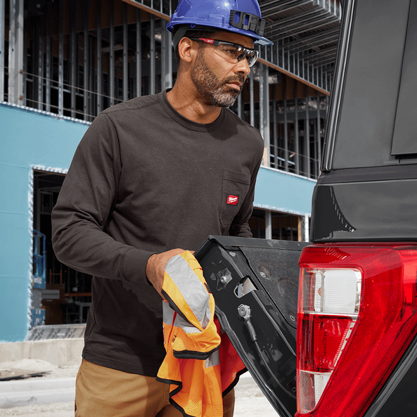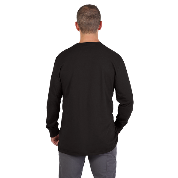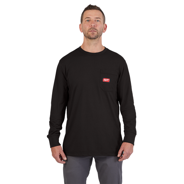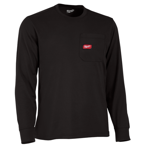 The long sleeve GRIDIRON Pocket Tee is built to survive the jobsite. Our Pocket Tees are built from durable, breathable fabric for all-day protection to outlast the job. Built with a tear and abrasion-resistant 60/40 cotton and polyester blend, these Pocket Tees are engineered for broken-in comfort on day one. Moisture-wicking fabric makes these Pocket Tees great for the most demanding conditions. MILWAUKEE® continues to deliver solutions across the jobsite. Available in Black and Blue from sizes small to 2XL.
