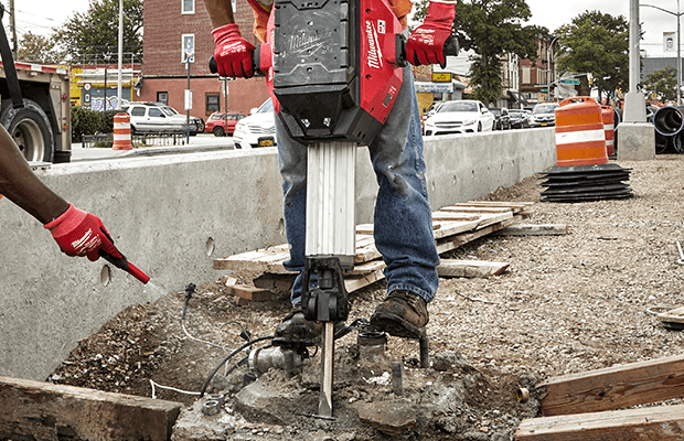 The Milwaukee® MX FUEL™ equipment system goes beyond the limitations of petrol and corded units, utilising the industry's most advanced batteries, motors, and electronics to deliver the best experience for users. This is equipment, redefined. The MX FUEL™ Breaker delivers a fast, safe, and easy concrete demolition experience. 68 joules of blow energy and 1,300 bpm allow for maximum productivity. With a floating body design, the anti-vibration body limits excess vibration and provides users with a comfortable grip while operating. The Breaker features a front handle for easy transportation and manoeuvring across the job site. The MX FUEL™ Breaker comes with two 28 mm hex chisels (1x flat, 1x pointed), while a Breaker Trolley is also available (sold separately). The MX FUEL™ Breaker is ONE-KEY™ compatible, allowing users to track and manage the tool. An unbelievably productive breaker, providing low vibration, lightweight and maximum productivity.