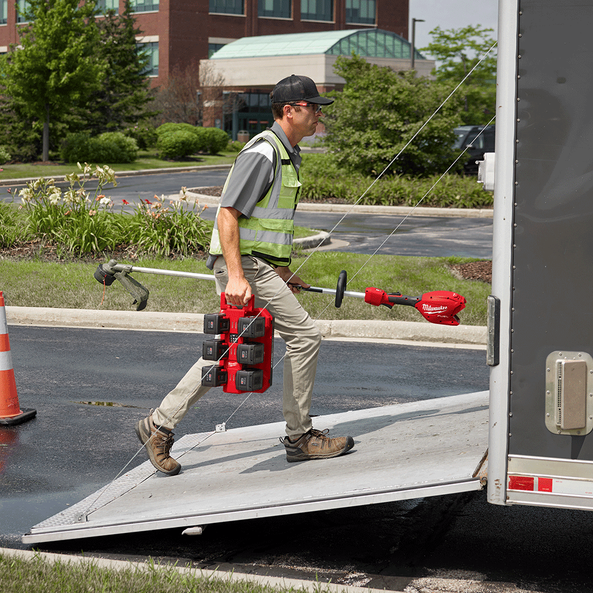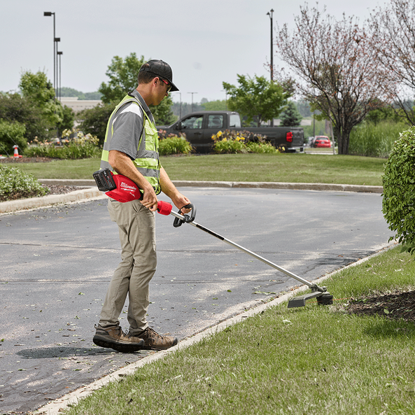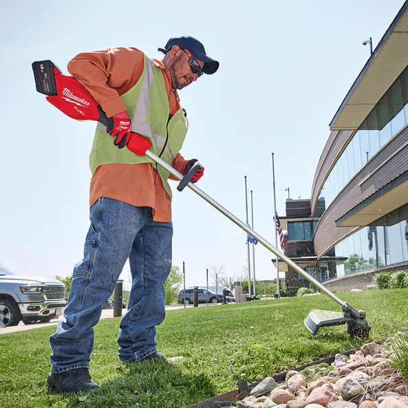 The M18 FUEL™ Line Trimmer is designed for the landscape maintenance professional, with the POWERSTATE™ Brushless Motor™ generating the equivalent of 31cc petrol, maintaining speed in demanding applications without bogging down, and enabling users to complete routine maintenance and thick brush clearing jobs fast. The motor features an advanced air-cooling system to sustain demanding applications, increasing user productivity. The balanced, light weight design of the fixed shaft Line Trimmer reduces user fatigue and increases control. The motor is positioned in the rear of the trimmer to provide the ultimate combination of power and manoeuvrability. The advanced electronics package allows the tool to reach full throttle in under 1 second, provides 3 speeds, and a variable speed trigger, maximising productivity. REDLINK™ PLUS Intelligence enables full-circle communication between the tool and battery, providing users with unmatched levels of performance, protection, and productivity. The equipped Easy Load Trimmer Head provides the ability to load up to 6.1 m of 2.4 mm trimmer line in under 30 seconds. The M18 FUEL™ Line Trimmer is optimised for use with an M18™ REDLITHIUM™ FORGE™ 12.0Ah Battery (sold separately) to maximise performance and runtime.