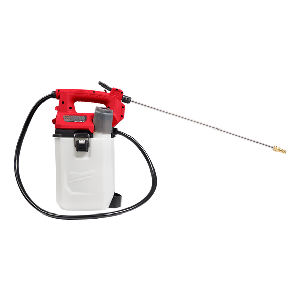The M12™ 7 Litre Handheld Chemical Sprayer provides users with an interchangeable tank design with no manual pumping. Designed to meet the needs of the landscape maintenance professional, the battery-powered handheld sprayer delivers instant, constant and adjustable pressure, up to 80 PSI, with up to 5.0 metre vertical spray distance. The 3-speed pressure adjustment knob adjusts the pressure between 20 – 80 PSI for ultimate user control across a range of spraying applications. When paired with an M12™ REDLITHIUM™ 2.0Ah Battery (sold separately), the chemical sprayer provides users with up to 300 litres of spray delivery per charge. The M12™ Powered Sprayer Head is compatible with both 4 Litre (49162761) and 7 Litre (49162762) Chemical Sprayer Tanks, providing the ability to choose the right size the tank for the application at hand, and premix multiple tanks to maximise productivity. The Handheld Chemical Sprayer can be used either one- or two-handed for added versatility. The sprayer features an onboard measuring cup for quick chemical measurement, a strainer that filters debris from entering the tank, and vertical and horizontal wand storage. With a dual diaphragm pump for increased durability and maximum pump life, the M12™ 7 Litre Handheld Chemical Sprayer provides instant, constant pressure while reducing fatigue associated with manual pumping.
