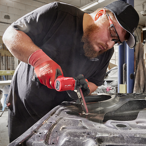 360 degrees tool-free arm rotation allows users to pivot the sand belt in the optimal position for increased ergonomics and access.