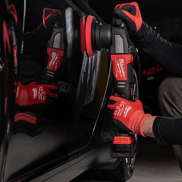 By harnessing the power, performance, and run-time of M18 FUEL™ technology, the M18 FUEL™ Random Orbital Polisher delivers corded performance while providing you with the freedom to work anywhere. This battery-powered polisher gives you total control with its variable speed trigger, 8-position speed dial with RPM settings ranging from 2,400-4,500 RPM, trigger lock-on button, and maintains speed under load. The M18 FUEL™ Random Orbital Polisher frees you from the fear and frustration you may face in applications from surface damage or cord management. With over 50mm of battery clearance and proper use, you can rest assured that their work surface is protected from dents and scratches. The MILWAUKEE® M18 FUEL™ Random Orbital Polisher provides the run-time necessary to keep professionals productive during polishing and heavy correction applications when paired with M18™ REDLITHIUM™ HIGH OUTPUT™ 6.0Ah batteries. This polishing tool is easy to use and comfortable for extended periods with an optimised center of balance and ergonomic design.