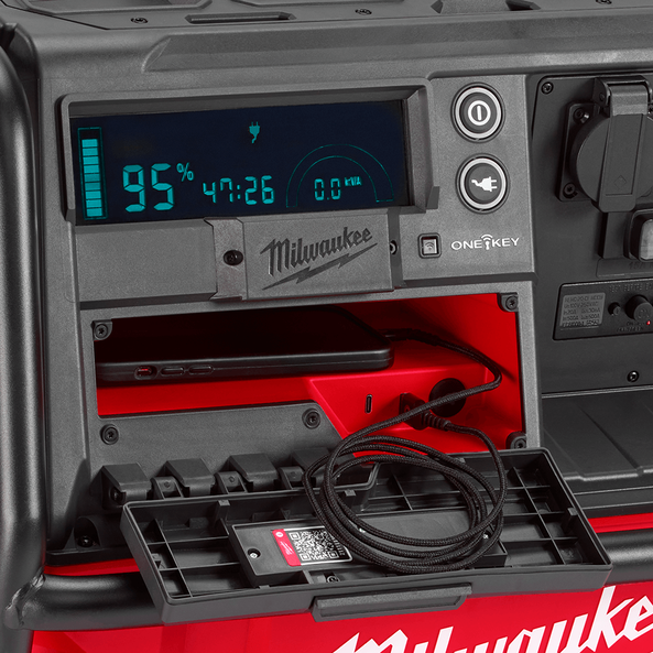 The MILWAUKEE® ROLL-ON™ 7200W/3600W 2.5kWh Power Supply provides maximum power for the toughest jobs, instant set-up to eliminate petrol and temporary power hassles, and provides power anywhere. The ROLL-ON™ Power Supply includes a REDLITHIUM™ Integrated 2.5kWh Battery which provides high power and runtime to sustain high demand applications. This battery is non-removable, with no additional batteries being required. ROLL-ON™ is equipped with 3x 230V RCD protected outlets, as well as 1x USB-C, and 1x USB-A outlets to provide power for multiple pieces of equipment. The Power Supply delivers 7200W of starting power and 3600W of running power to power tough applications. ROLL-ON™'s pure sine wave inverter protects sensitive electronics and features pass through power, providing users the ability to charge and discharge simultaneously. ROLL-ON™ can be instantly set-up on the job, eliminating the hassles of petrol or temporary power such as heavy extension cord use, outlet overcrowding, maintenance, pull starts, and petrol management, in order to maximise team productivity on the job. With the ability to be powered anywhere, ROLL- ON™ can be used from indoors to temporary outdoor use with no emissions, quiet operation, and IP54 rating to withstand jobsite conditions. The Power Supply is fully compatible with the PACKOUT™ Modular Storage System and includes a telescoping handle and 240 mm all-terrain wheels to withstand jobsite environments such as gravel, dirt, and mud. Integrated with ONE-KEY™ technology, allowing the ability for tracking, management and adjustable charge rate options to maximise outlet usage onsite.