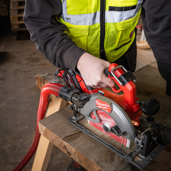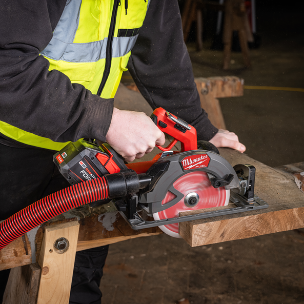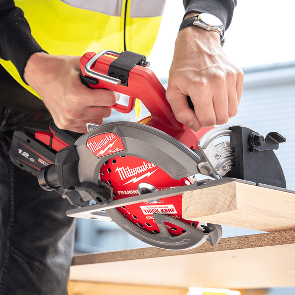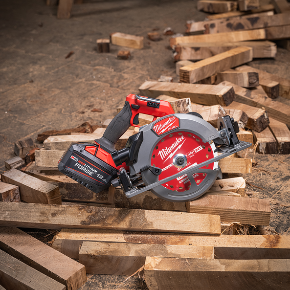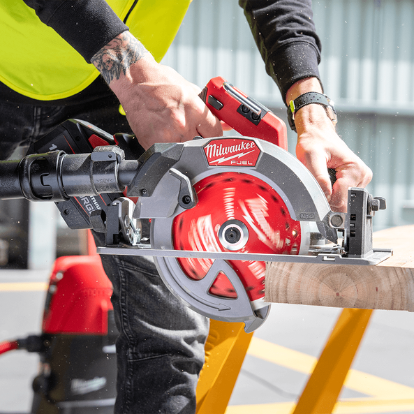 The M18 FUEL™ 184mm Circular Saw is designed for the professional carpenter, remodelers, and general contractors who rely on high-performing and durable tools. Leveraging the latest in cordless technology, this saw offers class-leading performance, providing the power to complete more demanding applications and the cut speed to achieve greater productivity. The POWERSTATE™ Brushless Motor delivers 6,000 RPM, maintaining high speed under load, providing users the ability to complete their most demanding applications efficiently. The latest in REDLINK PLUS™ Electronics ensures maximum tool performance and protection from overload, overheating, and over-discharge. Compatible with all M18 REDLITHIUM™ batteries, the saw is designed for FORGE™ delivering up to 750 cuts per charge when paired with an M18 REDLITHIUM™ FORGE™ 12.0Ah battery. The ergonomic design makes the saw a perfect solution for all-day cutting. Positive bevel detents and depth detents offer added productivity and reduce downtime. Additionally, the saw has an electric blade brake, LED work light, rafter hook, and all magnesium guards and shoes, keeping the user productive and providing the durability to handle the toughest job site conditions.