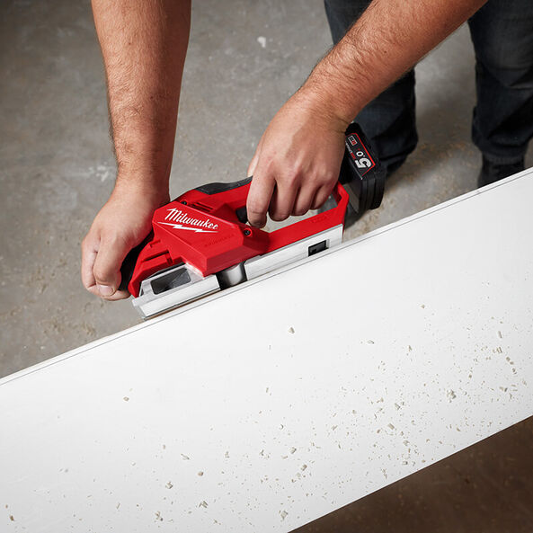 Designed for the finish carpenter and remodeler, the M12™ Brushless Planer provides the power to plane and scribe in soft and hardwoods in a compact design. The M12™ Brushless Planer has the power to remove up to 2mm (5/64") in a single pass. The dual-sided shavings port allows users to direct shavings to either side of the tool, improving ease of use and productivity. This lightweight and compact planer uses a 56mm (2") wide shoe, which is optimised for common applications such as scribing and planing doors. With 14,500 RPMs and 2 blades on the cutter head, the M12™ Brushless Planer delivers a smooth surface finish. With 21 depth settings ranging from 0 to 2mm (5/64"), users have the ability to make precise, accurate cuts. The lockable kickstand allows users to store the kickstand away to avoid interference with the workpiece. The shavings collection attachment and universal hose adapter allows users to attach a vacuum to reduce clean-up time and maintain a clean jobsite. The battery-powered planer features an integrated battery fuel gauge and carries Milwaukee®'s industry-leading 5-year limited power tool warranty.