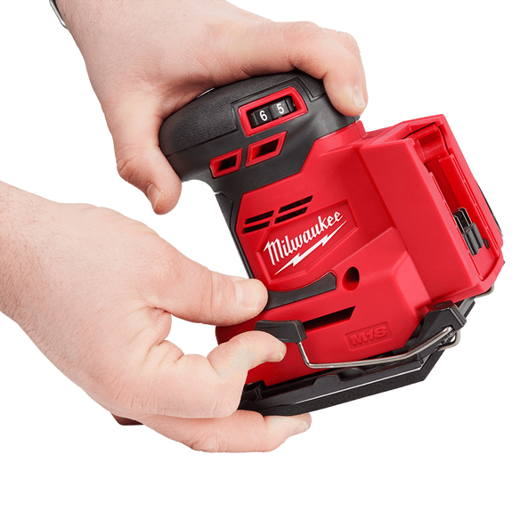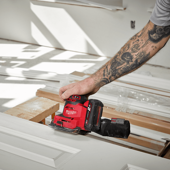 Designed for the professional carpenter, remodeler, and general contractor; our M18™ 1/4 Sheet Sander is optimised for performance and productivity on the jobsite. This M18™ 1/4 Sheet Sander offers unmatched power at 13K Max OPM and class-leading dust collection to replace your corded unit. The low vibration and ergonomics of the tool deliver enhanced comfort and user control to reduce fatigue. The two-step clamp and hook & loop system allows for quick and easy sandpaper changes. The variable speed dial offers adjustment from 13K to 11K OPM for precise removal throughout a wide variety of materials. Our dust collection system paired with our durable dust bag or universal hose adapter reduces clean-up time and provides a cleaner work environment.