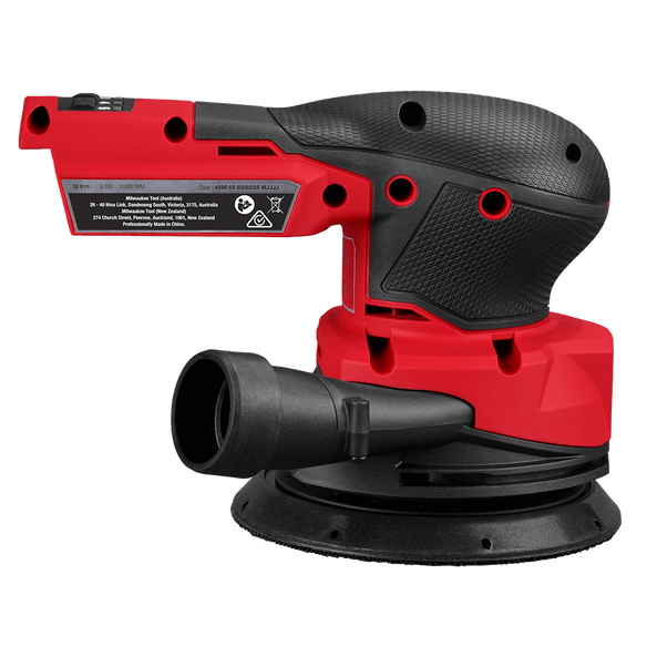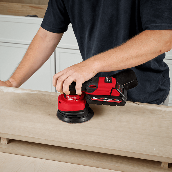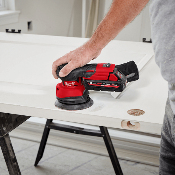 The M18 FUEL™ 125 mm Random Orbital Sander is designed for the professional carpenters, remodelers, and painters who rely on high-performing and durable tools. Leveraging the latest in cordless technology, this sander offers class-leading performance, providing the power to complete heavy stock removal and achieve stain-grade finishes with its 2.5mm orbit diameter. The POWERSTATE™ Brushless Motor delivers 6,000 - 12,000 OPM, ensuring high speed operation with low vibration. The ergonomic form-fitting pommel grip enhances user comfort, allowing the user to sand for longer, with less discomfort. The ergonomic design provides users with added control across all orientations of usage, making it an essential tool on the job site. The latest in REDLINK PLUS™ Electronics ensures maximum tool performance and protection from overload, overheating, and over-discharge. The sander also features VACLINK™ wireless dust control, enabling the remote operation of VACLINK™-equipped dust extractors when paired. The anti-static coating prevents shocks and shutdowns, ensuring reliable operation. With an included universal hose adapter, the system achieves up to 95% dust collection, keeping your workspace cleaner and safer.