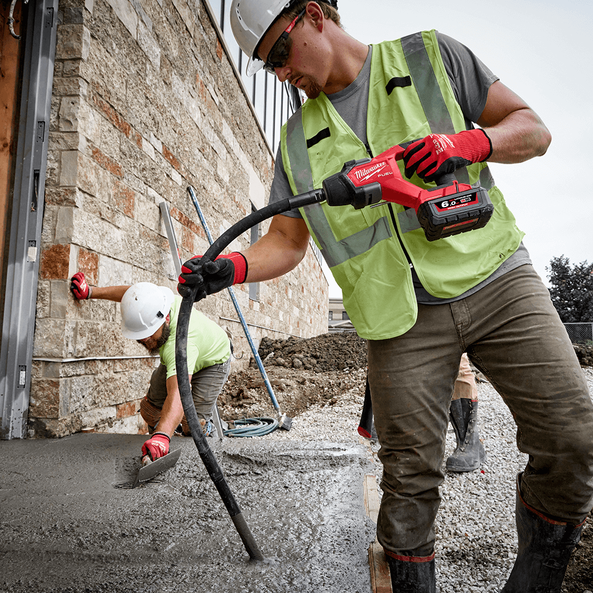 The M18 FUEL™ 1200mm (4') Needle Concrete Vibrator delivers powerful vibrations with 12,500 vibrations per minute. The cordless concrete vibrator is ideal for users pouring small sections of concrete who need a portable yet powerful solution. With the ability to consolidate 18.9m3 per charge using a M18™ REDLITHIUM™ 5.0Ah Battery, users will benefit for the long runtime without the hassle of cords, extra whips or heads. The M18 FUEL™ 1200mm (4') Needle Concrete Vibrator is also available in a larger 2400mm size (M12FCVN240).