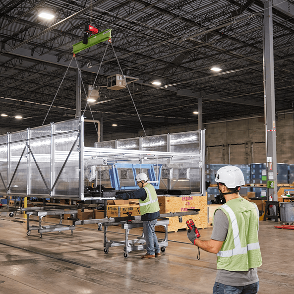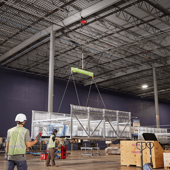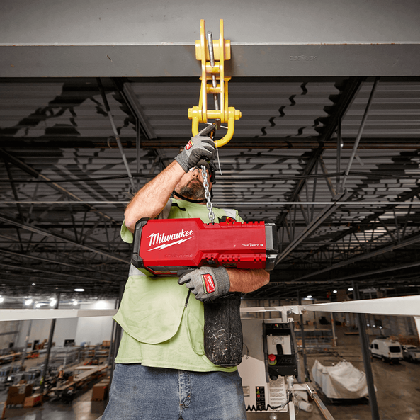 The Milwaukee M18™ 1 Ton Chain Hoist with ONE-KEY™ brings new innovation into the Material Handling Category, designed to give users easy installs, reduce down time and Improved Mobility. Powered by M18™ REDLITHIUM™ Batteries, The M18™ 1 Ton Chain Hoist with ONE-KEY™ solution eliminates the time needed to set up extension cords to power hoists onsite. The wireless remote delivers enhanced control in each lift. Equipped with 18m (60ft) of remote range, variable speed, and fine adjustment, enables users greater visibility and accurate installs. Weighing in at 21kg, the compact design enables for easy storage on and off the job site. Designed to lift in both inverted and standard orientations, the hoist increases material lifting versatility while decreasing onsite strain.
