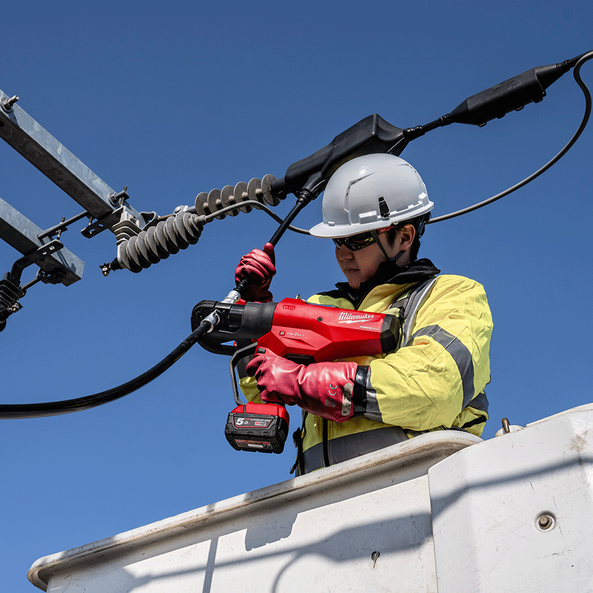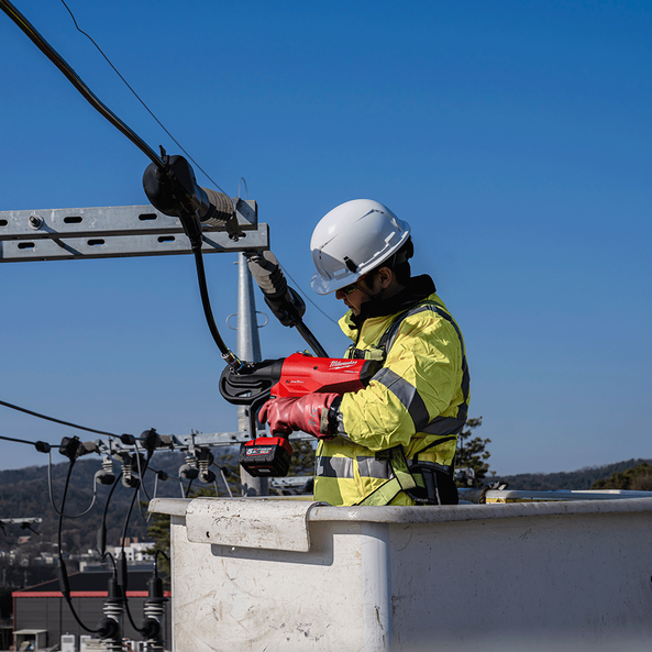 The M18™ FORCE LOGIC™ 120kN Utility Crimper is the easy way to crimp. Engineered to reduce weight and improve balance, the crimper delivers up to 120kN output force to handle the toughest jobs, Alignment is simple and easy with a 350˚ rotating head with red alignment marks. Predictive Force Monitoring (PFM™) constantly measures force output to deliver consistent speed that won’t bog down on larger connectors while delivering accurate pressure, every time with instant pressure verification via a green indicator. Pre-crimp battery check that automatically ensures enough battery charge to complete each crimp and auto-complete to ensure full pressure is reached once a crimp is engaged. Milwaukee crimpers feature a fully enclosed high speed hydraulic pump, POWERSTATE™ Brushless Motor, REDLINK™ Electronics and REDLITHIUM batteries delivering longer life and Ultimate Reliability in tough conditions. Featuring Milwaukee® ONE-KEY™ Technology, the crimper enables you to store real time crimp data, generate professional reports, view historical tool performance data and sync it all wirelessly to the cloud for easy access. Like all ONE KEY™ tools Milwaukee® Crimpers feature tool tracking, allowing you to pinpoint missing tools quicker and inventory management which creates a central place for you to track all tools and equipment across your network of jobs and users.