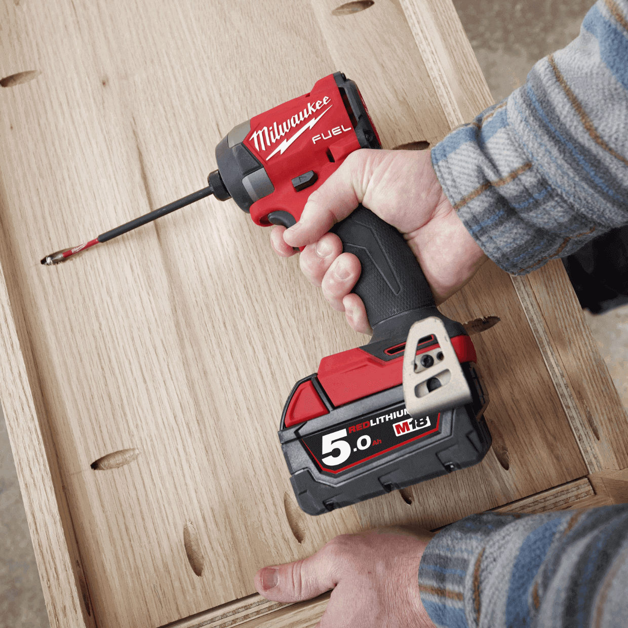 The M18 FUEL™ 1/4" Hex Impact Driver features the POWERSTATE™ Brushless motor which delivers maximum power for a full range of capabilities to complete the widest variety of applications. Increase productivity on the jobsite with fast driving speed without sacrificing power or control. REDLINK PLUS™ intelligence delivers Ultimate Trigger Control by providing smooth acceleration for small fasteners to prevent stripping of screws or damaging of materials. Featuring 4-mode drive control provides users with greater control over output speed and power. Self-Tapping Screw Mode is designed to reduce walking when starting self-tapping screws as well as reduce overdriving, breaking, and stripping out screws. The new impact driver also features Tri-LED lighting, illuminating the area of work while eliminating shadows.