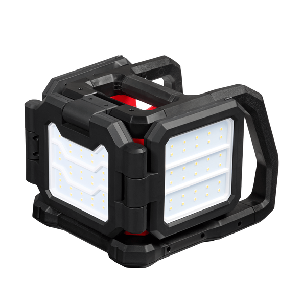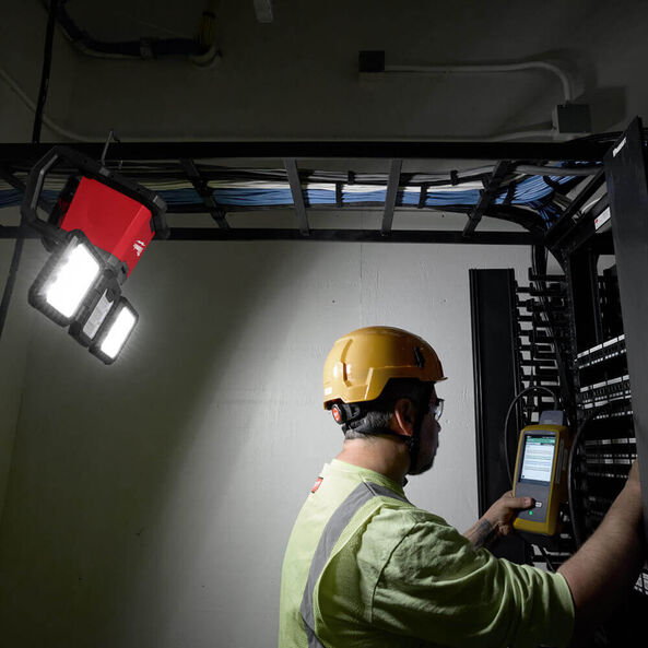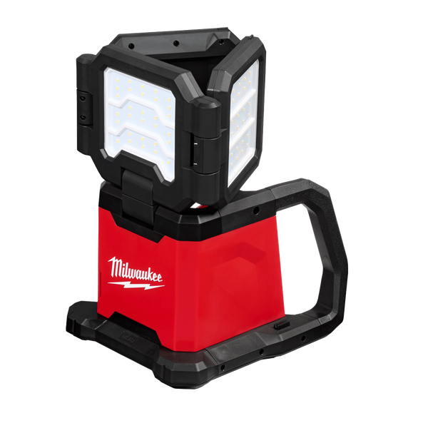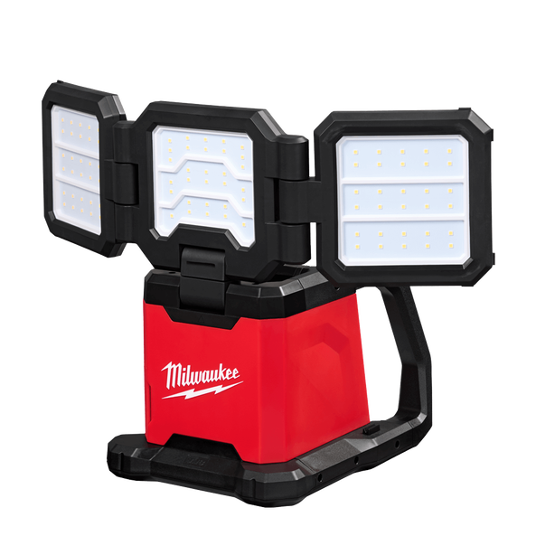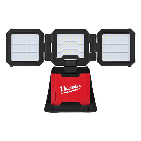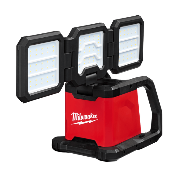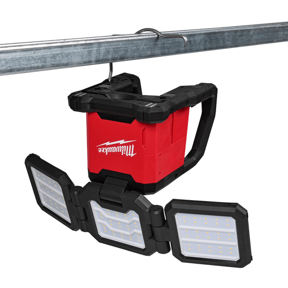 Our M18™ Three Panel Flood Light delivers a high-performing 4,500 Lumens of flood and area lighting in a compact and portable size. The light has three folding panels that provide optimal lighting coverage, offering various brightness modes and individual light head power options for any jobsite need. With a versatile base featuring a hook, magnet, and keyholes, you can effortlessly mount this light overhead in any jobsite environment. The M18™ Three Panel Flood Light delivers 4,500 lumens of TRUEVIEW™ High-Definition Output for 3 hours of runtime on high mode with an M18™ REDLITHIUM™ 5.0Ah Battery. On its lowest brightness setting, the light provides up to 30 hours of runtime. Compatible with AC power, the light can provide all day runtime. Designed with the jobsite in mind, the M18™ Three Panel Flood Light can withstand drops up to 2.7 metres, and is backed with a 5 Year Tool and a limited lifetime LED Warranty.