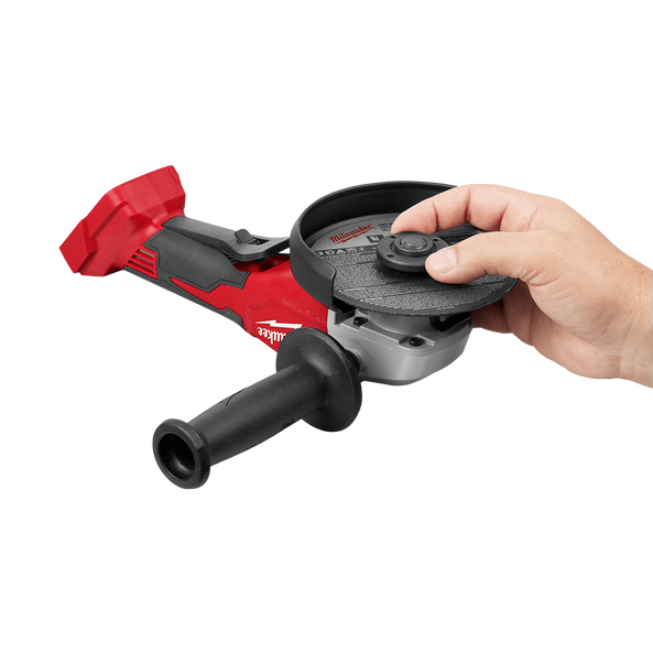 The M18™ Brushless 125mm (5") Angle Grinder with Deadman Paddle Switch delivers power and runtime while maintaining its compact size. The 11,000 rpm brushless motor has been built and optimised specifically for cutting and surfacing applications. Paired with built-in REDLINK PLUS™ power tool technology and a M18B5 battery, the Brushless Angle Grinder provides efficient power delivery and longer battery life resulting in up to 60 cuts in 12.7mm rebar. The M18™ Brushless 125mm (5") Angle Grinder with Deadman Paddle Switch includes an electronic clutch for kickback protection, as well as overload protection to maximise motor life. With a M14 spindle and tool-free guard adjustments, users will experience faster adjustments and less downtime, while remaining fully compatible with the most common grinder accessories in the market. The compact and lightweight build allows for excellent control and comfort. The Brushless Angle Grinder is built to last with an all-metal gear case, getting the job done every time.