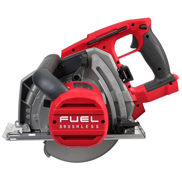 The M18 FUEL™ 203 mm (8”) Metal Cutting Circular Saw generates maximum power for fast cutting, and delivers up to 36 m (120') of cutting corrugated metal sheeting per charge from a M18™ REDLITHIUM™ HIGH OUTPUT 8.0Ah battery. Designed to perform in the toughest applications, the M18 FUEL™ 203 mm (8”) Metal Cutting Circular Saw combines performance and durability with the portability of the M18™ platform. The POWERSTATE™ Brushless Motor provides 4,000 RPM and faster cutting performance than corded options. REDLINK™ PLUS Intelligence ensures maximum performance and protection from overload, overheating, and over-discharge. With onboard chip collection, the jobsite is left free of chips, and the collected chips are easy to dispose of. When paired with a M18™ REDLITHIUM™ HIGH OUTPUT 8.0Ah battery (not included), the user gets 50% more power while running 50% cooler than a M18™ REDLITHIUM™ 5.0Ah Battery. This metal circular saw has a cut capacity of 66 mm (2-9/16”) for tackling demanding applications with a larger capacity than any previous cordless metal cutting circular saw.
