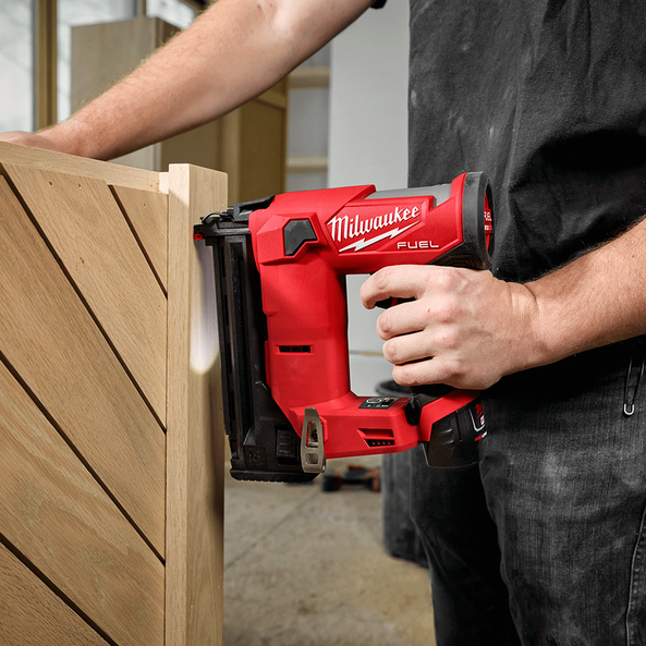 The M12 FUEL™ 18 Gauge Compact Brad Nailer delivers peak productivity at the jobsite, providing users with unmatched nailing performance and access to tight spaces with its compact, lightweight, ergonomic design. Leveraging a nitrogen air spring mechanism, this brad nailer enables users to sink 15mm – 38mm (5/8” – 1-1/2”) brad nails to the proper depth in both hard and soft materials while leaving clean, consistent nail holes. Because of the compact design, the M12 FUEL™ 18 Gauge Compact Brad Nailer delivers the most access of Milwaukee® cordless brad nailers, with the lightest weight at only 1.9kg. When paired with an M12™ REDLITHIUM™ 2.0Ah Compact Battery (M12B2), the M12 FUEL™ 18 Gauge Compact Brad Nailer can fire over 700 nails from a single charge. For additional run time, the M12 FUEL™ 18 Gauge Compact Brad Nailer is fully compatible with all Milwaukee® M12™ REDLITHIUM™ Batteries.