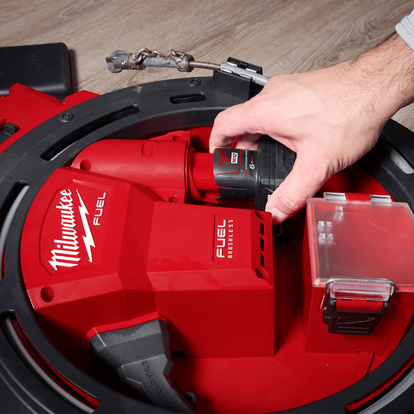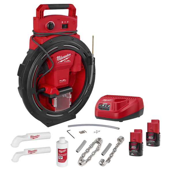 The M12 FUEL™ HIGH SPEED CHAIN SNAKE KIT delivers the most productive, compact way to clear with instant setup. Our Chain Snake provides the power to clear up to 10.5m out delivering full power at max distance. The Chain Snake provides the easiest, most controlled wall-to-wall clean, featuring an infinite variable speed, an electronic foot pedal, and a mechanical clutch. Eliminate the hassle of extension cords, finding electrical outlets, and unreliable drill connections with the Chain Snake that provides access to power anywhere. The included (2) M12™ REDLITHIUM™ 3.0Ah Batteries allow the tool to clear up to 20m of build-up per charge. The M12 FUEL™ Chain Snake comes with 1-1/4” – 2” Standard and Carbine Chain Knockers to clear soft blockages and build-up.