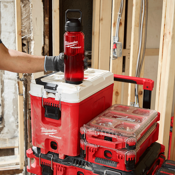 Our PACKOUT™ Plastic Bottles with Chug Lid feature twist-to-lock PACKOUT™ Connectivity so you can attach your bottle to the top of PACKOUT™ solutions, allowing for secure drink storage on the jobsite. Each bottle comes with a leakproof chug lid to prevent spills while transporting PACKOUT™, and dishwasher safe for easy cleaning. Our plastic bottles are the lightest in the range for easy transportation, while still having a strong, impact-resistant body - built and engineered to withstand the harshest jobsite environments. Milwaukee® PACKOUT™ is the industry's most versatile and durable modular storage system.